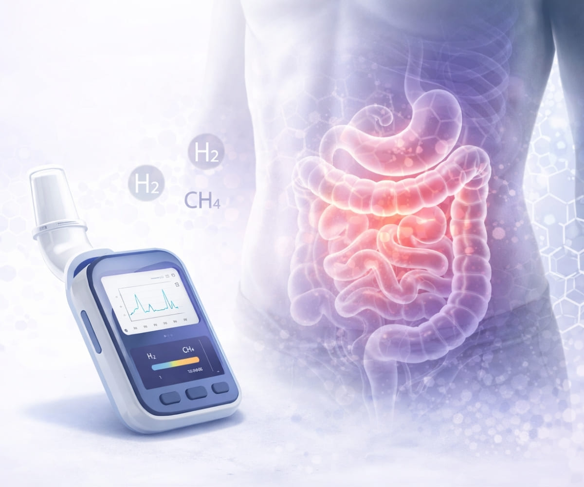La cuantificación mediante cromatografía de gases de las concentraciones de hidrógeno, metano y anhídrido carbónico en el aire espirado tras la ingestión de una cantidad controlada de lactulosa, lactitol o glucosa puede poner en evidencia un sobrecrecimiento bacteriano en el intestino delgado (SIBO).